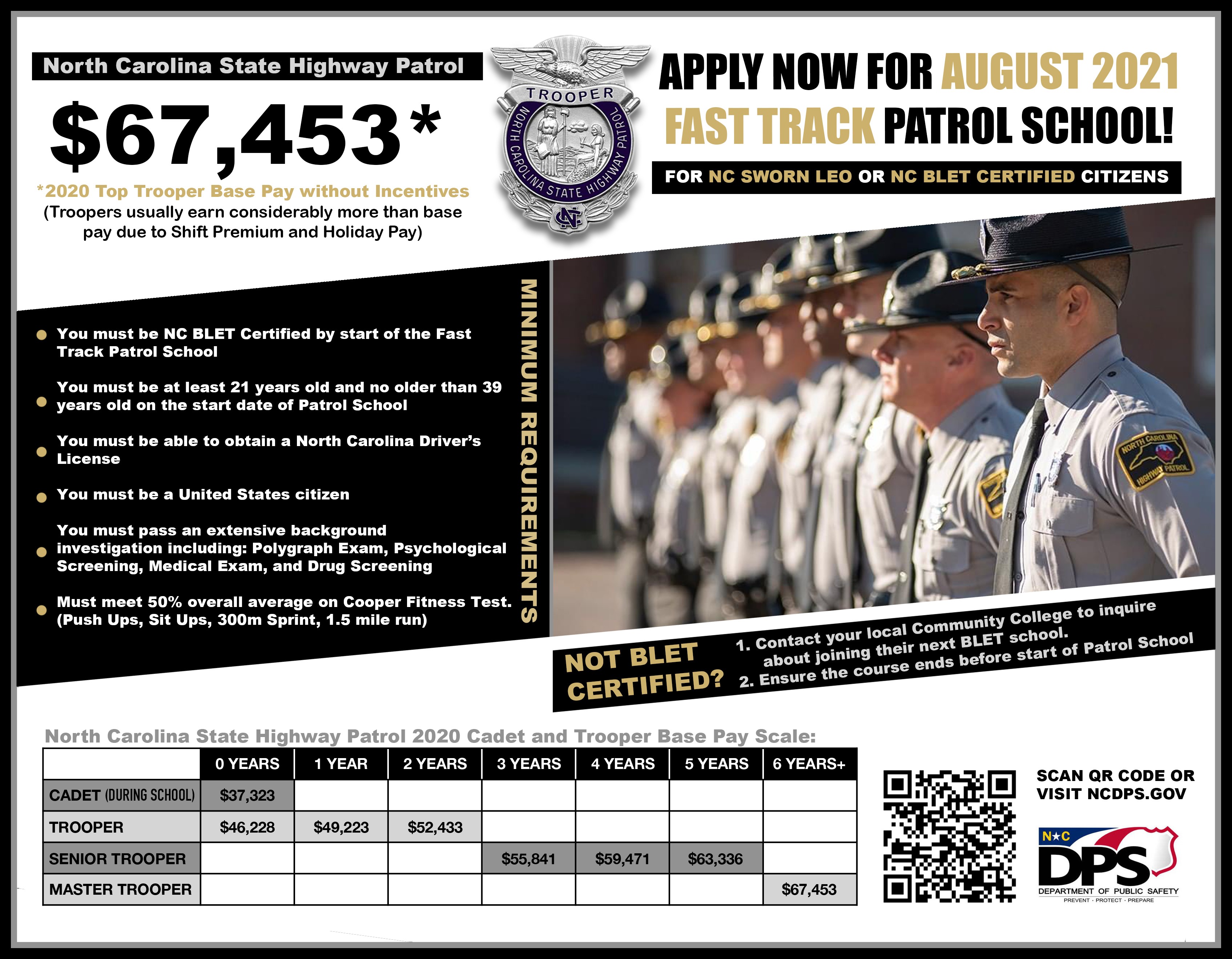 The north carolina state highway patrol employs over 1,600 troopers who cover at least 78,000 miles of roadways in north carolina. The application deadline is february 25, 2022. Click on the filter to.